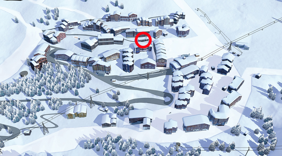 Il est situé en bord de piste dans le haut du village de Belle-Plagne.