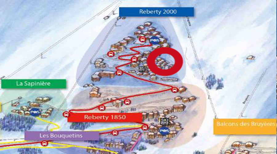 • Accès skis aux pieds par la piste des Boyes (direction Sunny Express)