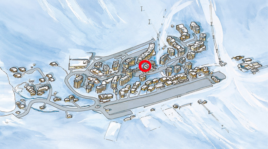 L’une des salles du Grattalu, d’une capacité de 16 places, offre une vue agréable sur la place des Curlings, centre de vie de Tignes Val-Claret.