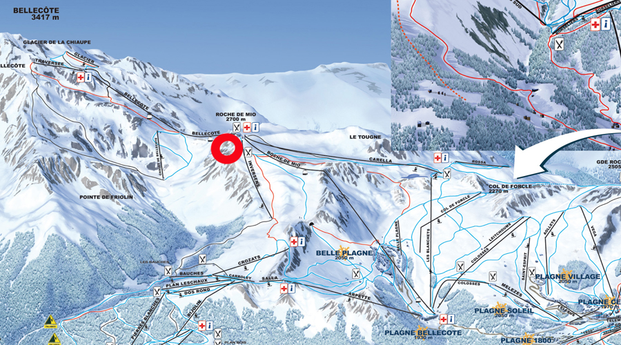 Situé à une altitude de 2700 mètres, sur le secteur de La Roche de Mio (Au dessus de Belle-Plagne), l'établissement propose :