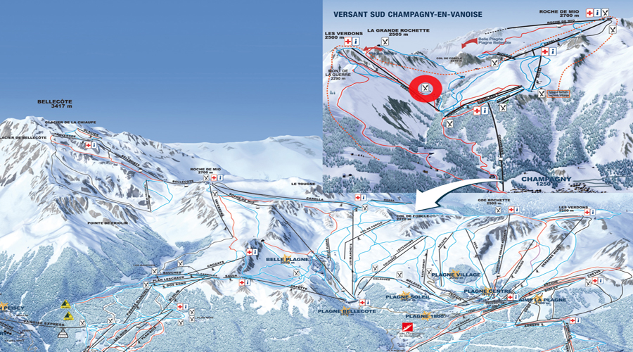 situé à 2000 m, sur le domaine skiable de la Plagne, secteur de Champagny.