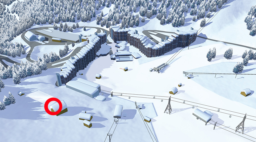 La piste juste à gauche du chalet, à travers les sapins……est la piste de coupe du monde de bosses….