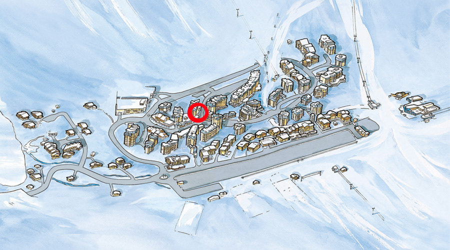 Il se trouve en plein centre du Val-Claret à Tignes, sous le centre médical.
