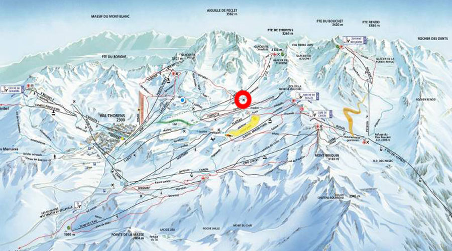 Le Caribou est un chalet rouge à l 'aspect scandinave, avec une immense terrasse panoramique, situé à l'intersection des Pistes Génépi et Asters.